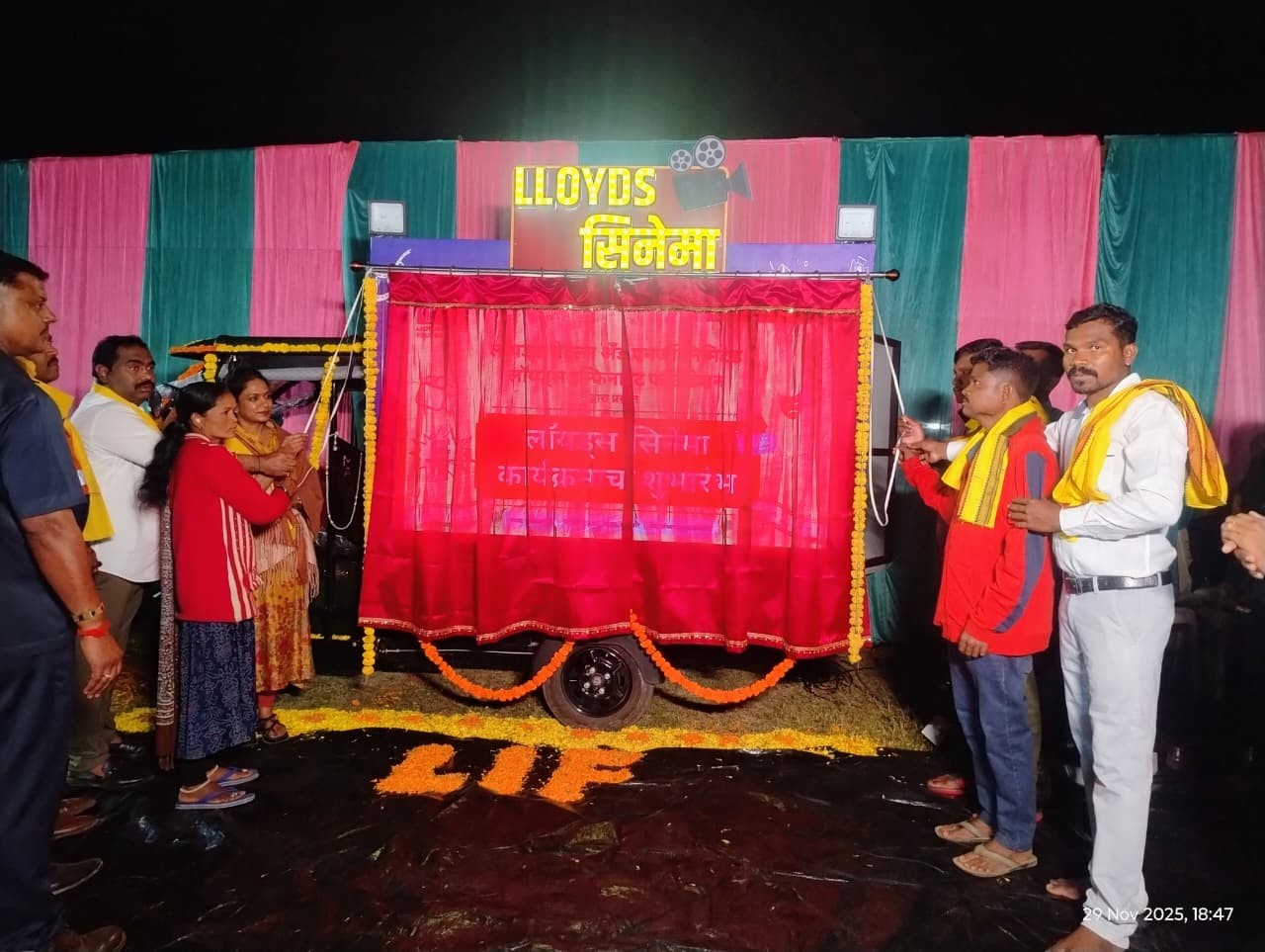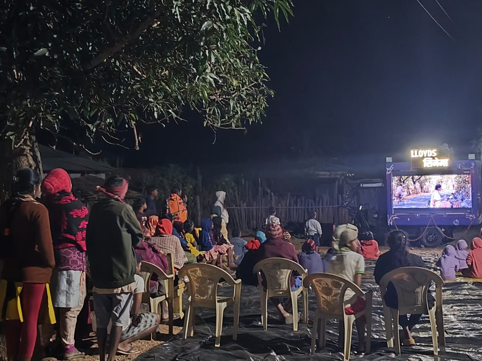 Inaugurated by Ms. Kirthy Reddy, Director – Lloyds Infinite Foundation, in the presence of village dignitaries, villagers, and Lloyds team, the first show at Pursalgondi lit up the night with the iconic Chak De India!